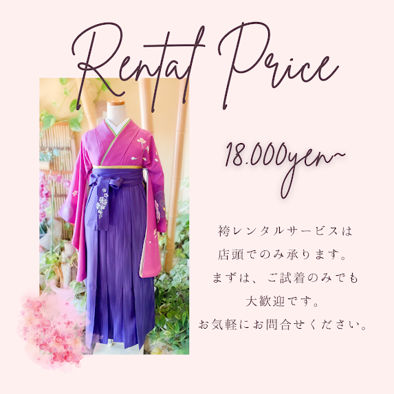 ハートランドでは、袴の販売だけでなく袴セットのレンタルも行っています。ご購入にするか、レンタルにするか迷っている方もお気軽にご相談ください。